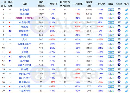 目前國(guó)內(nèi)網(wǎng)絡(luò)招聘網(wǎng)站很多,據(jù)不完全統(tǒng)計(jì),國(guó)內(nèi)的招聘網(wǎng)站已多達(dá)2000多家,但其質(zhì)量確實(shí)良莠不齊,狀況堪憂。為此,一些業(yè)內(nèi)專業(yè)的統(tǒng)計(jì)機(jī)構(gòu)也根據(jù)多方數(shù)據(jù)進(jìn)行了統(tǒng)計(jì)分析,得到的網(wǎng)站排名情況如下: