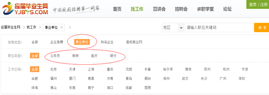 如果您想申請(qǐng)公務(wù)員,教師,醫(yī)生,銀行等事業(yè)單位的職位,點(diǎn)擊事業(yè)單位便會(huì)顯示相應(yīng)的信息頁(yè)面:
