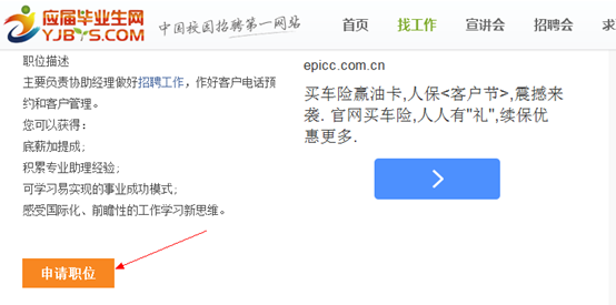通過(guò)以上任何一種功能都能搜索到您想要的職位招聘信息,一旦確認(rèn)您想要申請(qǐng)的職位的信息后,便可以點(diǎn)擊企業(yè)名稱進(jìn)入詳情頁(yè)面,點(diǎn)擊申請(qǐng)按鈕即可完成簡(jiǎn)歷提交操作,如下圖: