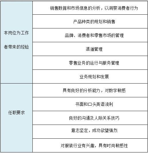 (2)李維斯校招崗位主要是管理培訓(xùn)生。從上表可知,公司該崗位對(duì)英語和分析能力比較高,英語能力強(qiáng)是外企的普遍要求,數(shù)字分析能力高是由于該崗位要對(duì)生產(chǎn)銷售等工作進(jìn)行跟蹤分析管理;特別之處在于該公司要求一定得時(shí)尚敏感度,同學(xué)們最好在平時(shí)生活中多關(guān)注一些時(shí)尚信息,培養(yǎng)對(duì)時(shí)尚的興趣。另外,公司對(duì)應(yīng)聘者的專業(yè)要求并沒有限制,十分看重應(yīng)聘者的個(gè)人素質(zhì)和品質(zhì)。