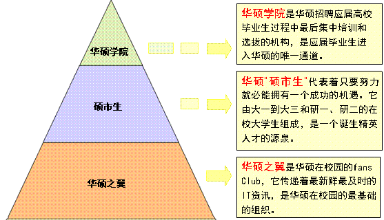 2008年,華碩校園人才招募培養(yǎng)活動(dòng)步入第八個(gè)年頭。依托“華碩之翼”、華碩“碩市生”、“華碩學(xué)院”三個(gè)校園人才培養(yǎng)組織,華碩構(gòu)建起完整的人才培養(yǎng)梯隊(duì)。每年,華碩的校園巡講和人才招募活動(dòng)都覆蓋至全國(guó)百余所重點(diǎn)高校,在大學(xué)生中取得了良好的反響。華碩在校園中主動(dòng)延伸人才培養(yǎng)線的模式,不僅成就了華碩源源不竭的成長(zhǎng)原動(dòng)力,同時(shí)也成為了各大跨國(guó)公司人力資源儲(chǔ)備創(chuàng)新的范本。