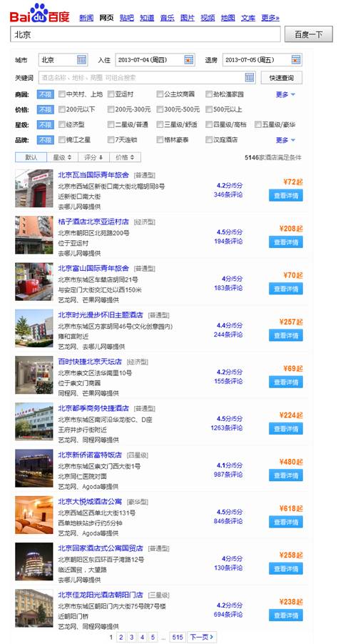 酒店查詢與預(yù)定:jiudian.baidu.com,北京比較大,建議求職者在來北京之前先選定某個(gè)商業(yè)區(qū),然后再選擇預(yù)定哪里的酒店。