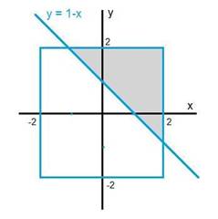 這道題我是蒙對的-.- 標準做法是先畫出y=1-x的線,上側(cè)陰影部分就是y>1-x,其所占比例為9/32: