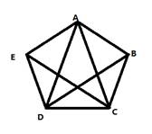 17)在下圖的多邊形ABCDE中從哪一點出發(fā),可以遍歷圖上的每條邊一次,而且僅遍歷一次