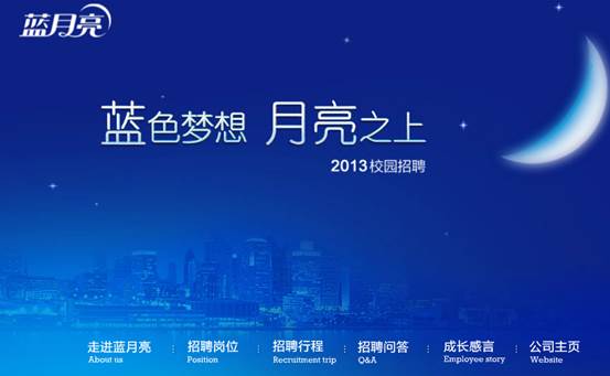 第一步:進(jìn)入藍(lán)月亮官方網(wǎng)站https://www.bluemoon.com.cn,然后點(diǎn)擊“人力資源→校園招聘→職位申請”的項(xiàng),進(jìn)入以下頁面