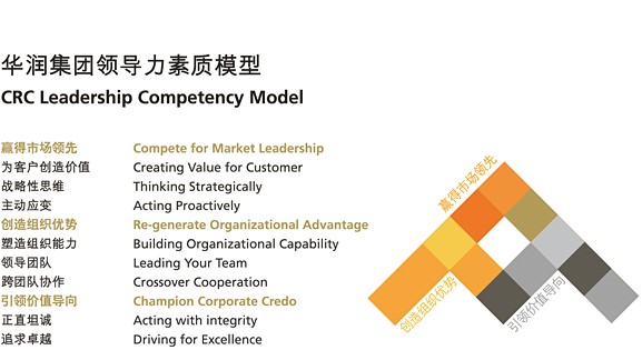應(yīng)對(duì)內(nèi)外部的挑戰(zhàn),華潤(rùn)置地要求企業(yè)領(lǐng)導(dǎo)人必須將關(guān)注的重點(diǎn)從專業(yè)技術(shù)領(lǐng)域轉(zhuǎn)向自身領(lǐng)導(dǎo)力和組織領(lǐng)導(dǎo)力的培養(yǎng)。華潤(rùn)集團(tuán)的領(lǐng)導(dǎo)力素質(zhì)模型在文化的打造、團(tuán)隊(duì)的打造、領(lǐng)軍人物的打造上樹立了一個(gè)價(jià)值標(biāo)準(zhǔn)。整個(gè)模型包括“贏得市場(chǎng)領(lǐng)先”、“創(chuàng)造組織優(yōu)勢(shì)”、“引領(lǐng)價(jià)值導(dǎo)向”三大類共八項(xiàng)素質(zhì)。