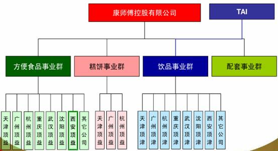 “康師傅”成長在中國“康師傅”方便面在市場上的成功,更加堅(jiān)定了頂新在大陸生根發(fā)展的決心,于是在天津經(jīng)濟(jì)開發(fā)區(qū),制面一廠、制面二廠、調(diào)理廠相繼落成投產(chǎn),生產(chǎn)規(guī)模的不斷擴(kuò)大使我們意識到:配套產(chǎn)業(yè)的同步發(fā)展是產(chǎn)業(yè)規(guī);缆分兄陵P(guān)重要的一環(huán)。于是從93年開始,我們以合作經(jīng)營方式引進(jìn)臺灣專業(yè)制造商來大陸投資設(shè)廠,先后建成了紙箱廠、PSP碗廠、包膜廠、塑料叉廠等配套服務(wù)廠商,形成了產(chǎn)業(yè)的垂直整和,為“康師傅”的進(jìn)一步發(fā)展奠定了堅(jiān)實(shí)的基礎(chǔ)。“康師傅”相繼在廣州、杭州、武漢重慶、西安、沈陽等地設(shè)立生產(chǎn)基地,并在全國形成了一個區(qū)域化的產(chǎn)銷格局。“康師傅”在完善產(chǎn)銷體系的同時,其投資領(lǐng)域也不斷擴(kuò)大,從方便食品事業(yè)發(fā)展到包括糕餅事業(yè)、飲品事業(yè)等多個事業(yè)領(lǐng)域。是目前世界上最大的方便面生產(chǎn)企業(yè)。如今,“康師傅”系列產(chǎn)品不僅行銷中國,并行銷至美國、加拿大、新加坡、西歐及俄羅斯等國家。“康師傅”純凈水、綠茶、烏龍茶、果汁飲料、八寶粥、“3+2”夾心餅干、米餅等產(chǎn)品亦在國內(nèi)同類產(chǎn)品中名列前茅。