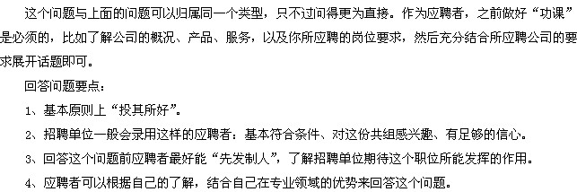 1、應(yīng)聘者最好站在招聘單位的角度來(lái)回答。 2、招聘單位一般會(huì)錄用這樣的應(yīng)聘者:基本符合條件、對(duì)這份共組感興趣、有足夠的信心。